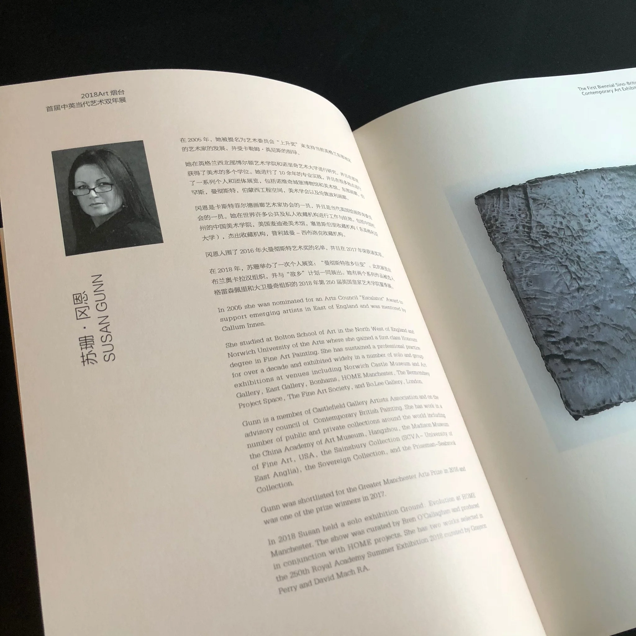 In 2018 Susan held a solo exhibition Ground: Evolution at HOME gallery, the show was curated by Art Director Bren O'Callaghan and her work was selected for the Royal Academy's 250 yr Anniversary Summer Show. Selected group exhibitions included Pulse Miami, An Appetite for Risk and the China - Britain Biennial of Contemporary Art at the Yantai Art Museum.